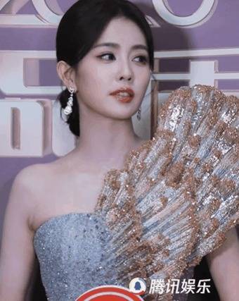 浅蓝色长裙清新淡雅,夸张的贝壳设计,竟然也不突兀,反而更加贵气,盘发造型增添了一抹典雅,就连头发丝都很精致,青春靓丽的风采抓人眼球。